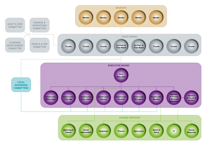 This means that the MAT has responsibility for the governance of its schools, although MATs may delegate specific powers to local governing bodies (LGBs). You can download a copy of Tandridge Learning Trust's Scheme of Delegation at the bottom of this page.